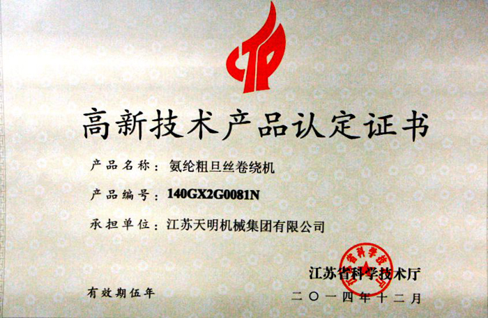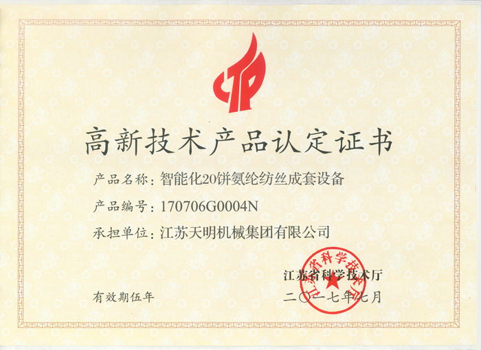 ● 2017年智能化20饼氨纶纺丝成套设备荣获江苏省重点推广应用的新技术新产品