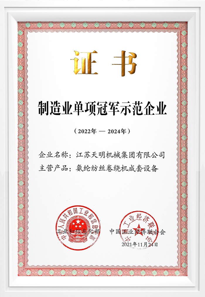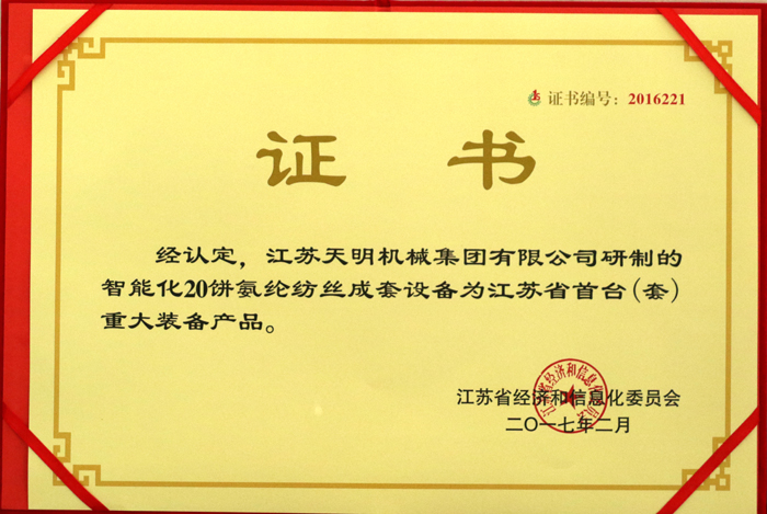 ● 2016年智能化20饼氨纶纺丝成套设备获国家首台(套)重大技术装备认定