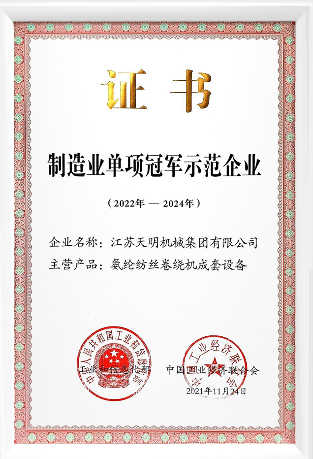 ★ 中国制造业单项冠军示范企业