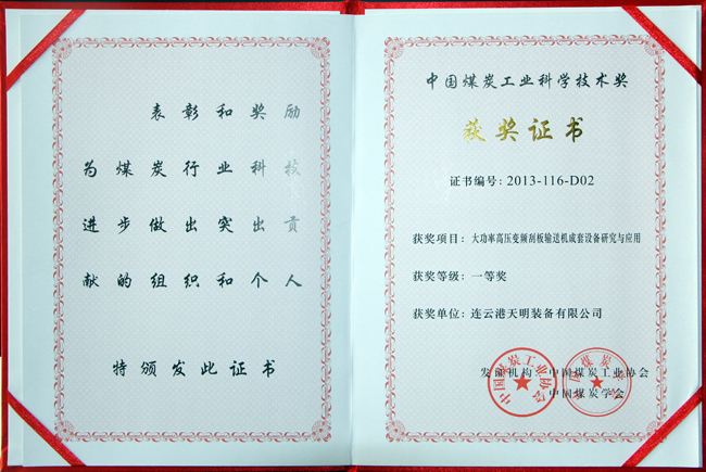 ★ 煤炭工业科技进步一等奖——智能化交流变频刮板运输机成套设备